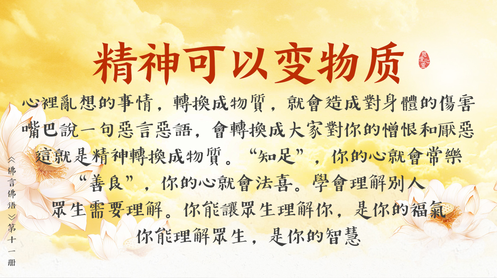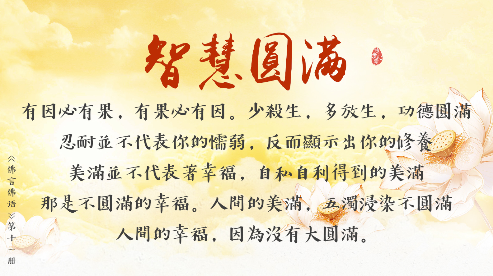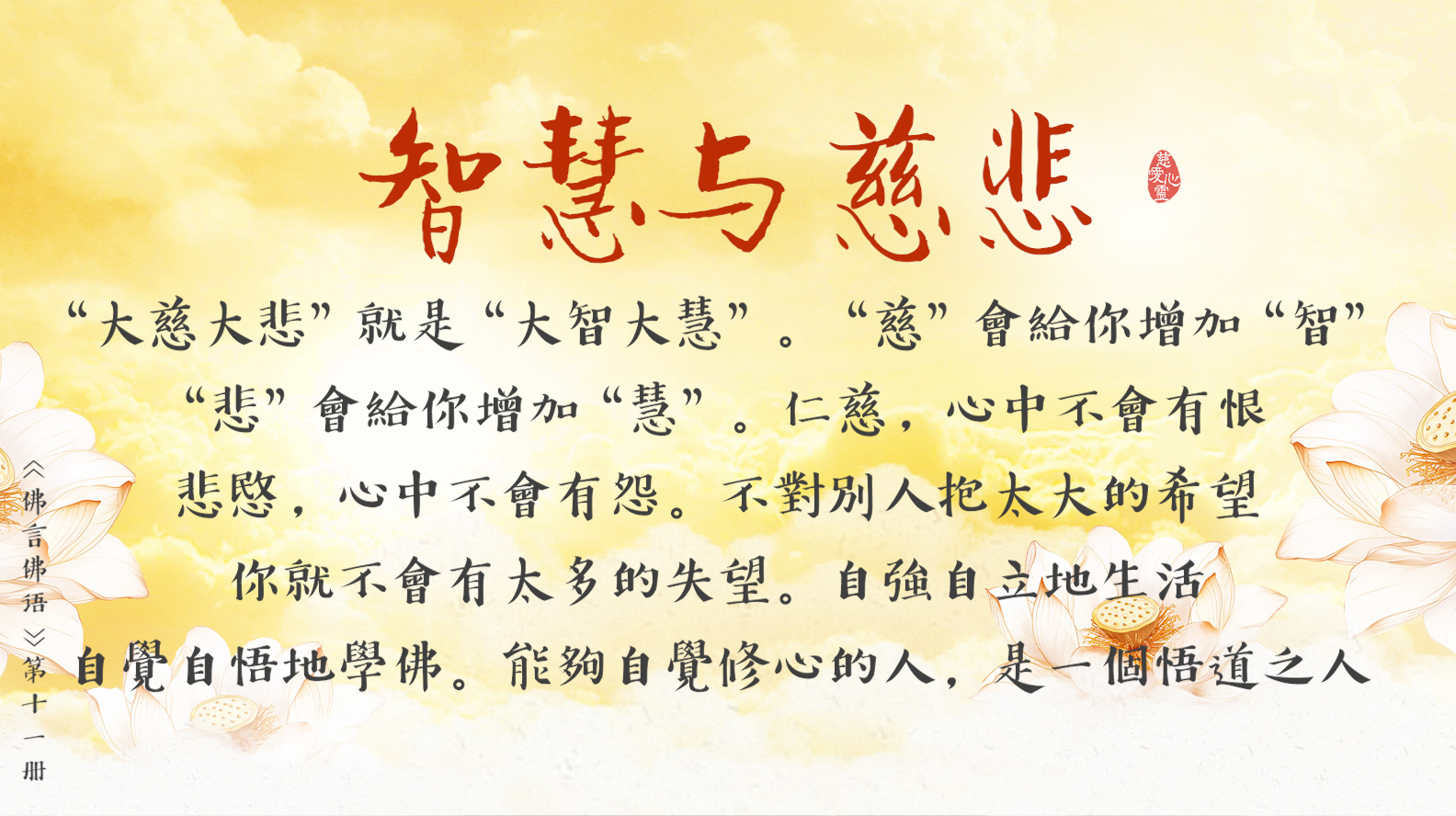 “悲”會給你增加“慧”。仁慈,心中不會有恨; 悲愍,心中不會有怨。