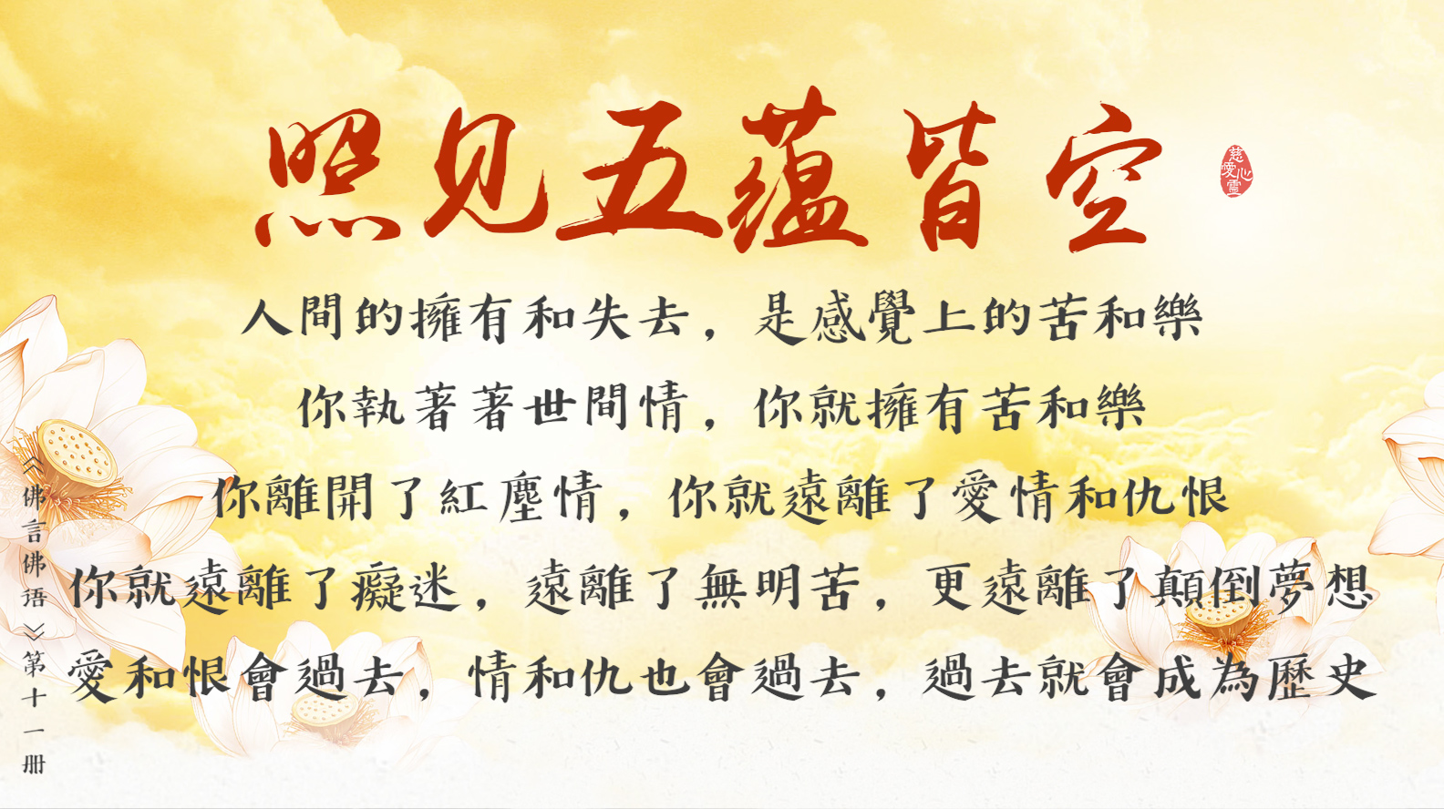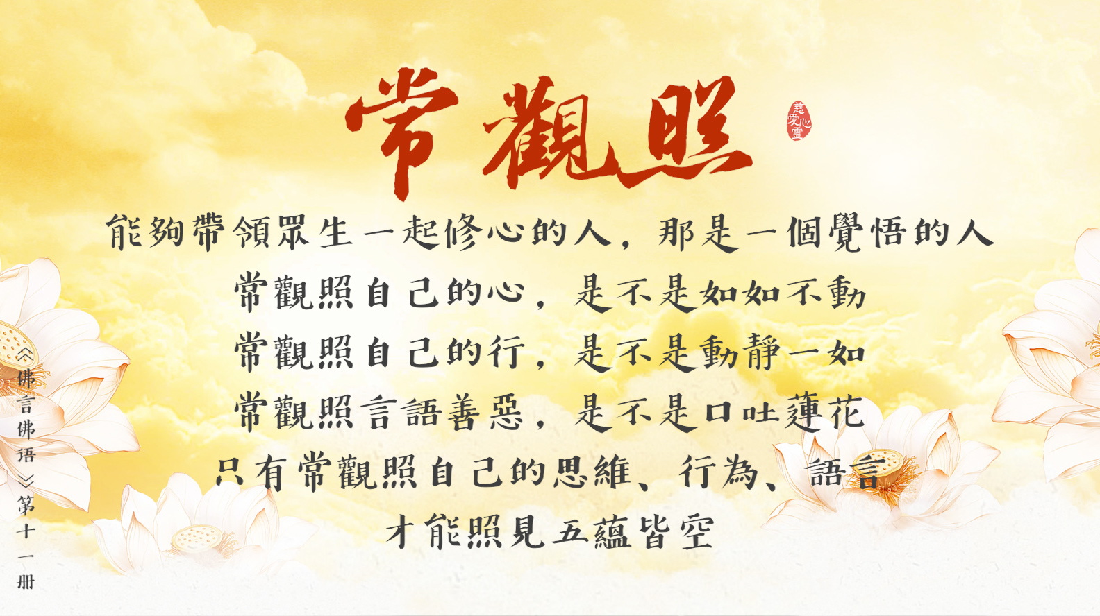 只有常觀照自己的思維、行為、語言,才能照見五蘊皆空。