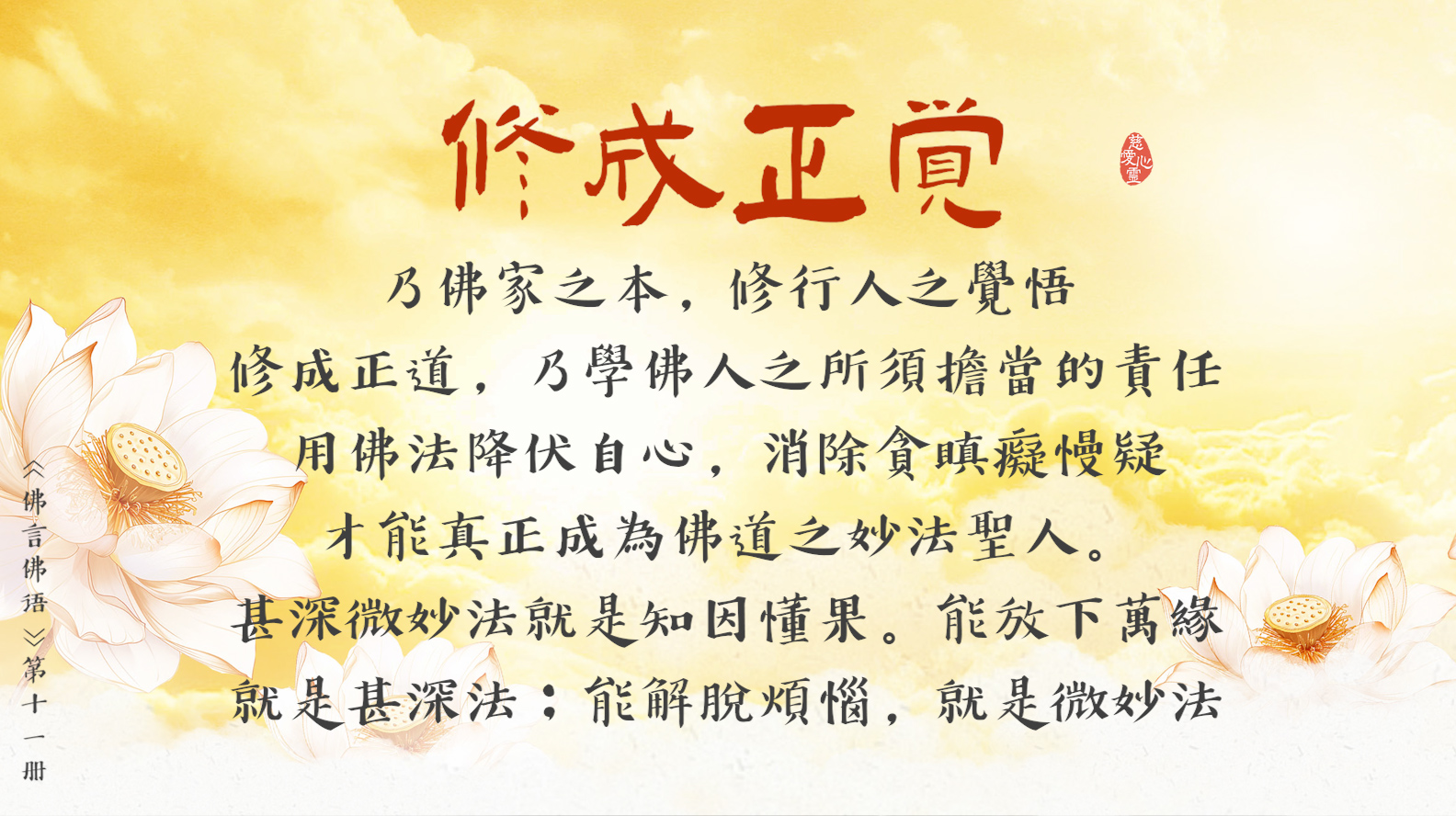 是在修心為上的真理之中, 重見慧命的曙光。