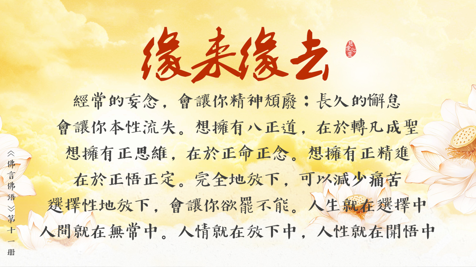 人生就在選擇中, 人間就在無常中。人情就在放下中, 人性就在開悟中。
