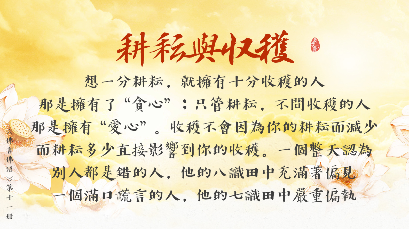 內心深處植眾德本, 八識田中植功德本。