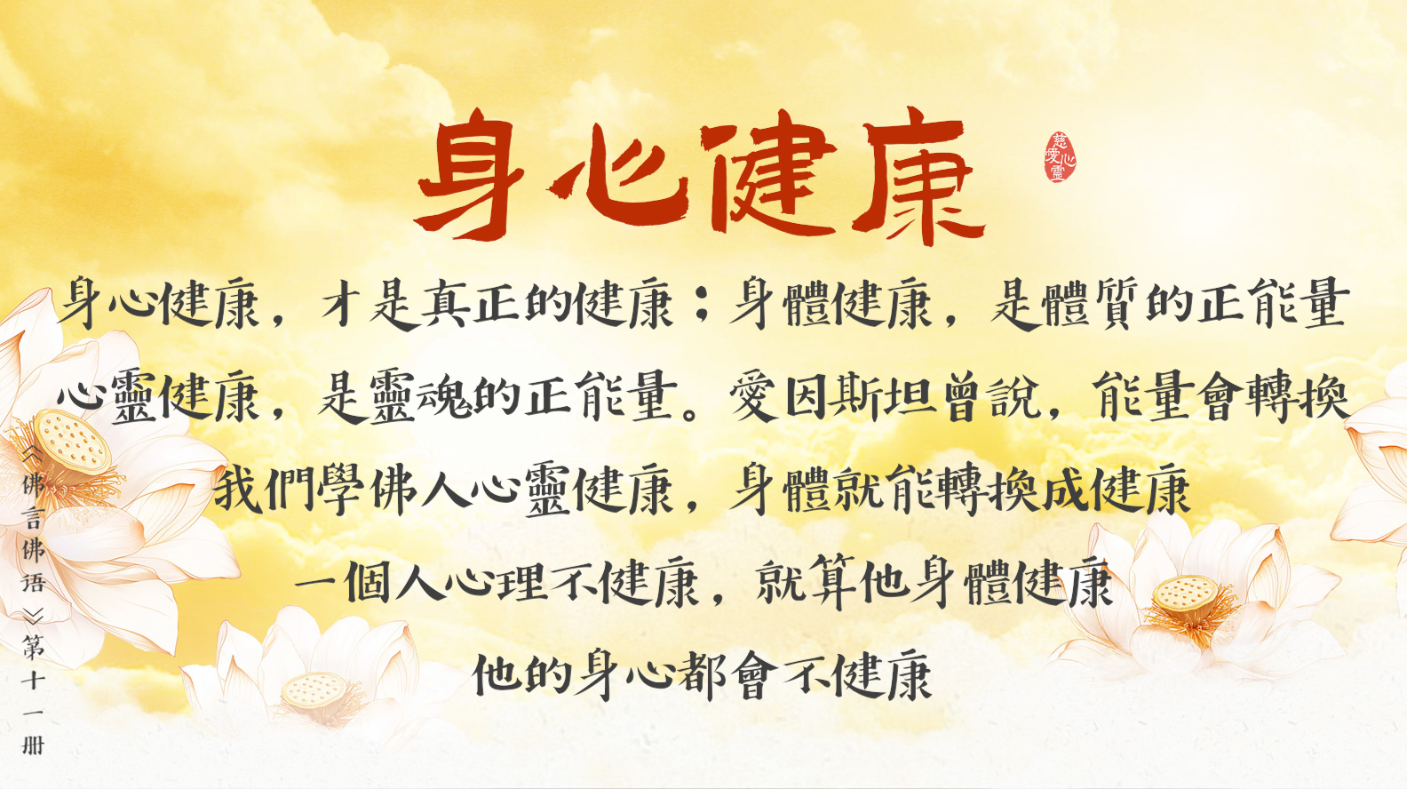 我們學佛人心靈健康, 身體就能轉換成健康。
